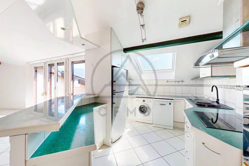 Découvrez cet appartement en attique traversant de 4 pièces situé à Vétraz-Monthoux, dans un quartier calme, à proximité immédiate de la frontière suisse.